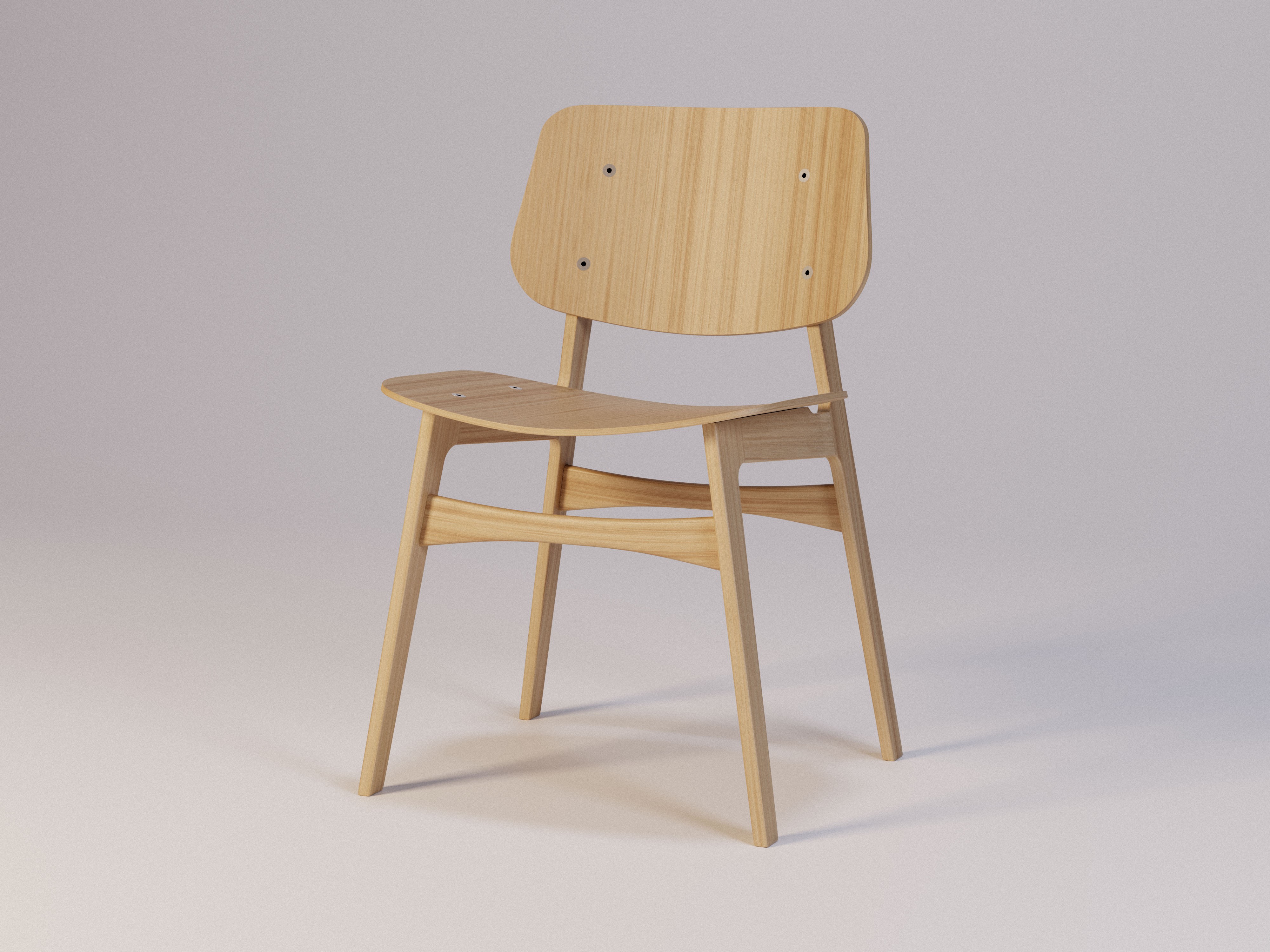 Dieses Projekt zeigt die dreidimensionale Modellierung, Texturierung und Beleuchtung eines Søborg Wood Base Stuhls mit besonderem Augenmerk auf die eleganten Kurven der Formgestaltung. Ziel war es, die charakteristischen Linien und die Materialität des Stuhls fotorealistisch zu inszenieren und zugleich seine ästhetische Leichtigkeit in einer digitalen Darstellung sichtbar zu machen.